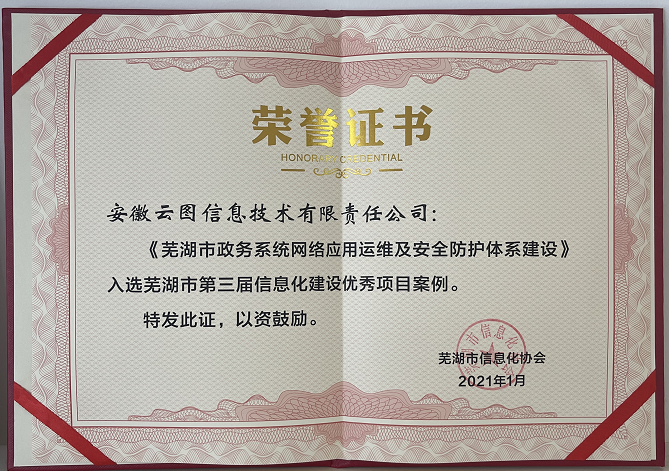 近日,芜湖市信息化协会正式发布了第三届信息化建设优秀项目案例获奖名单。“市政务系统网络应用运维及安全防护体系建设”项目脱颖而出,成功入选芜湖市第三届信息化建设优秀项目案例。