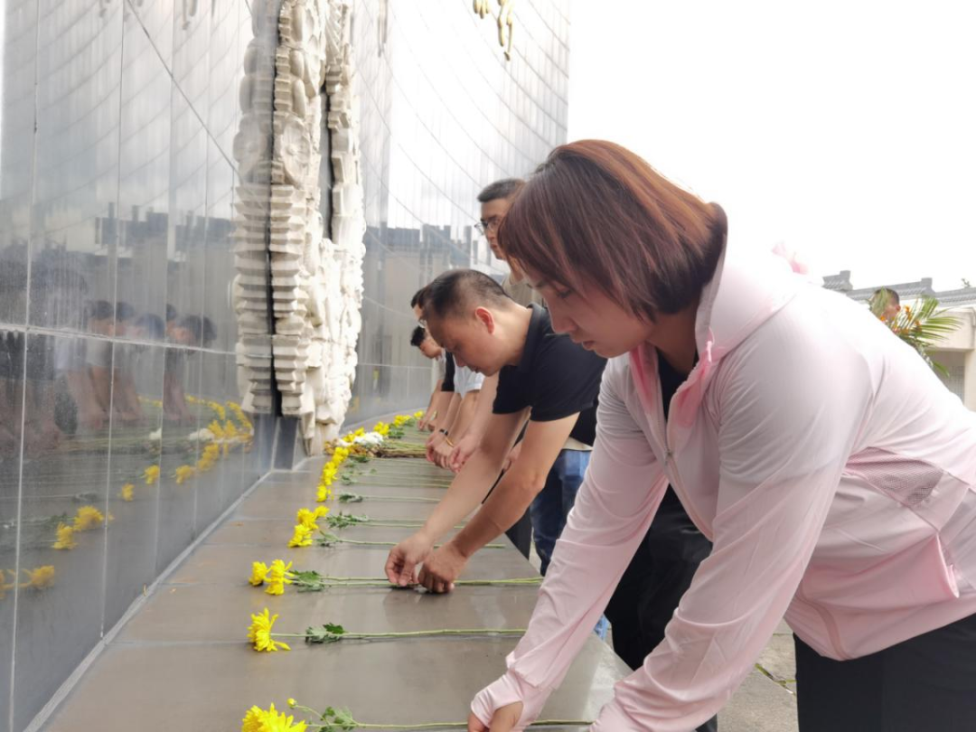 大家一起列队向英烈们敬献花圈,集体三鞠躬,向他们表达崇高的敬意,寄托无限的哀思。