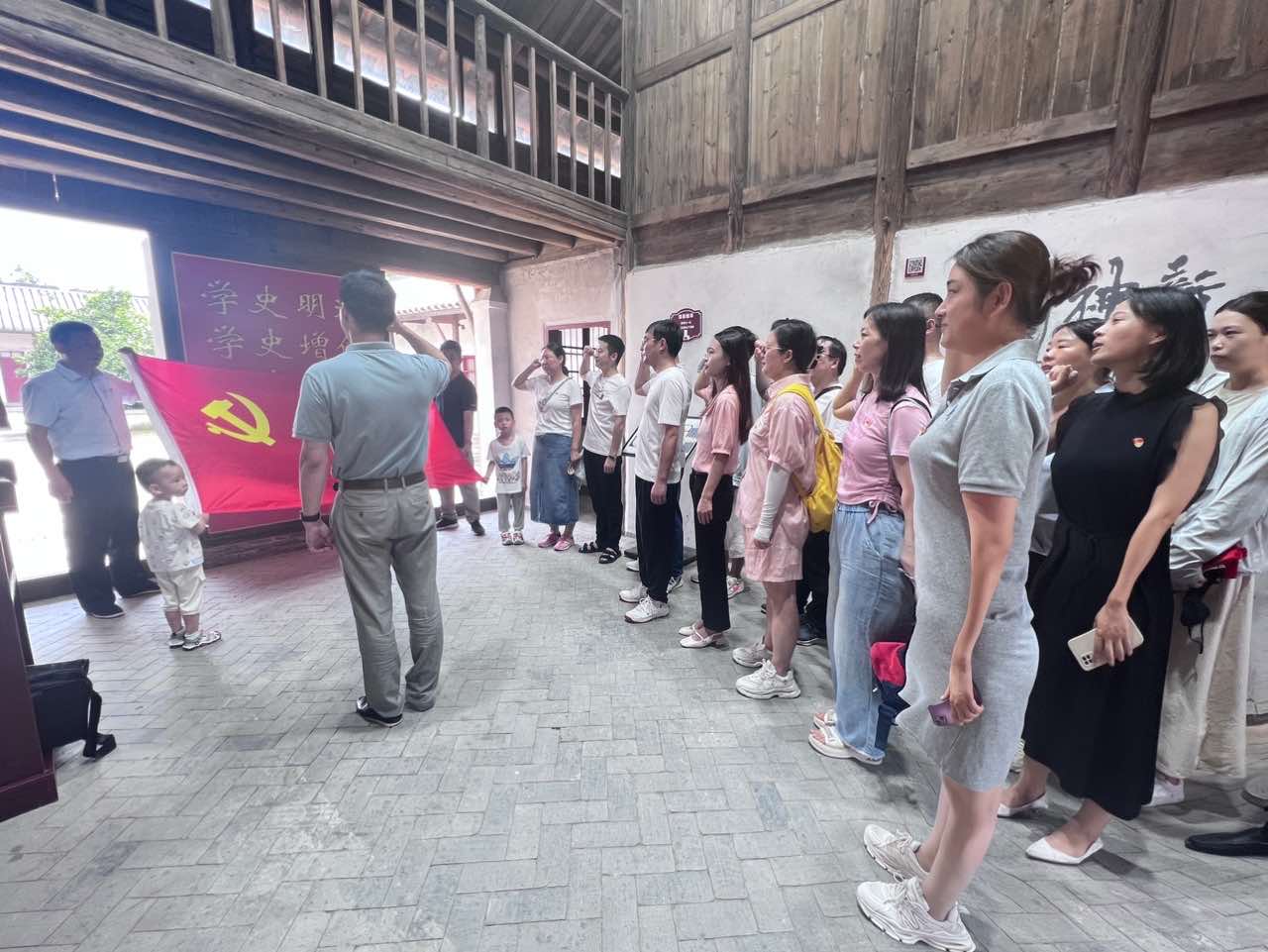 在白茆镇红色教育基地纪念馆里,中共安徽欧陆注册支部和中共安徽商贸职业技术学院信息与人工智能学院党总支新老党员齐聚,面对党旗重温入党誓词,感悟初心使命,强化责任担当。