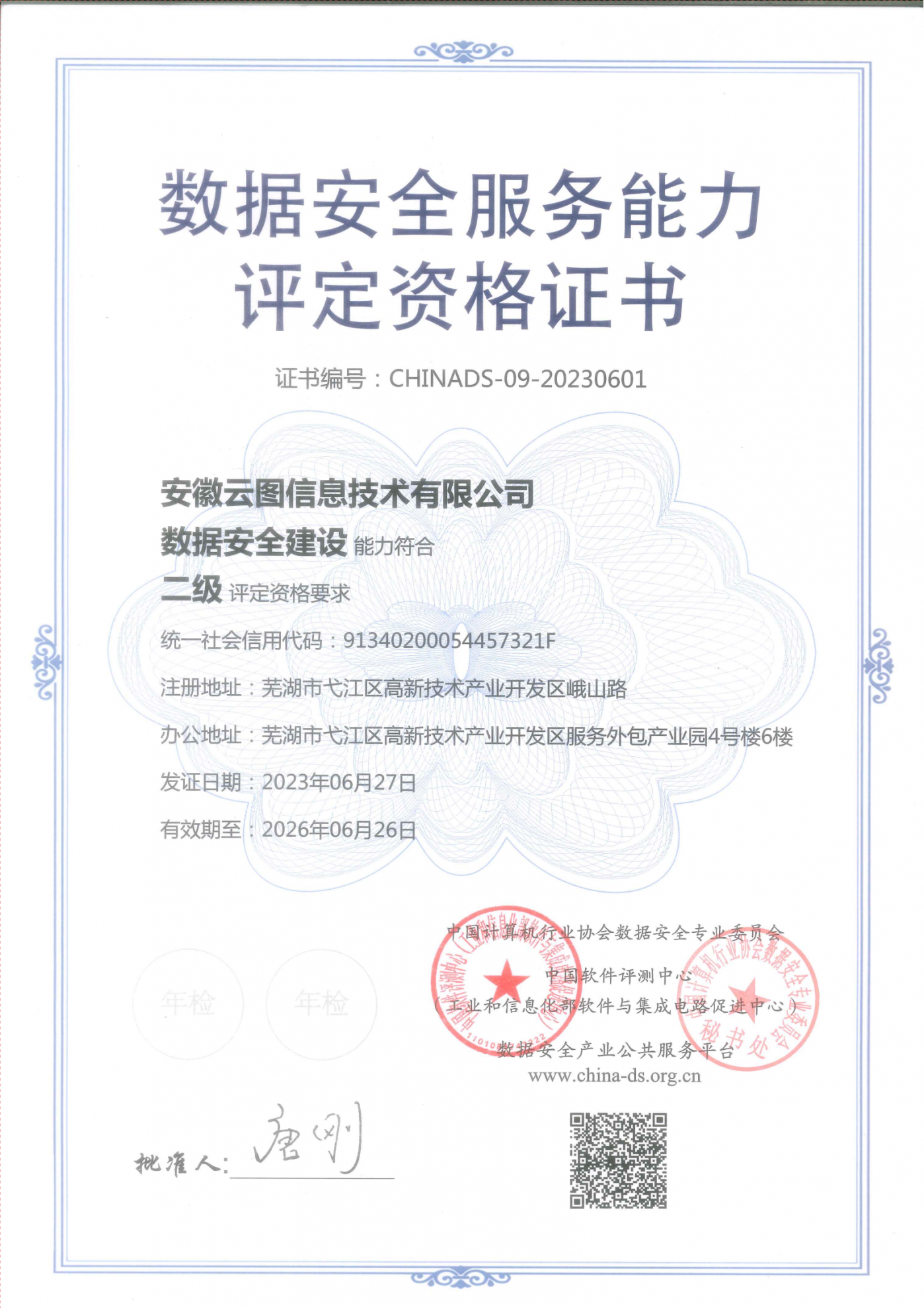 ? ? ? 安徽欧陆注册以优异的成绩通过数据安全服务能力验证,获得数据安全建设能力二级(最高等级)资格证书,成为全国首批通过该项验证的机构之一。